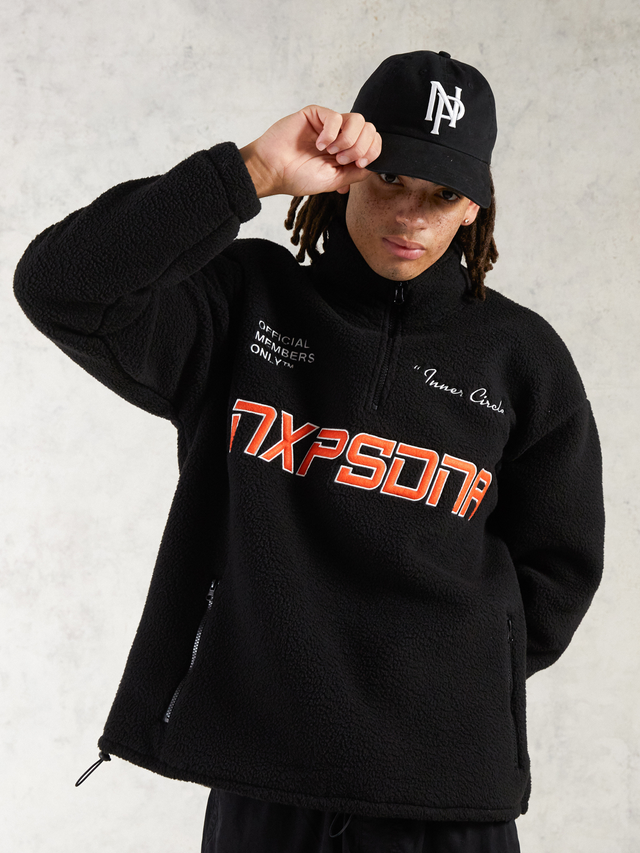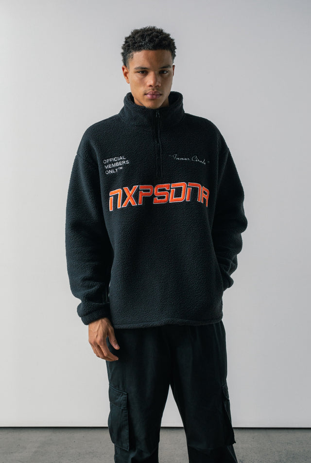 As our spring staples keep rolling through this week, the Core Pullover Fleece hits the spotlight. A true sport-inspired streetwear staple, this heavyweight sweater makes a bold statement with its pop orange "NXPSDNA" applique logo across the chest, complemented by white embroidered "Official Members Only" and "Inner Circle" details. The relaxed fit and 460 GSM bonded sherpa fabric ensure both comfort and style.
