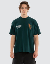 The Dawn Raptor Tee in Bull Pine features a box fit with a regular length, dropped shoulder, baggy sleeve, and finished with thick neck ribbing. Crafted from midweight 100% cotton in a soft wash for the ultimate comfort.