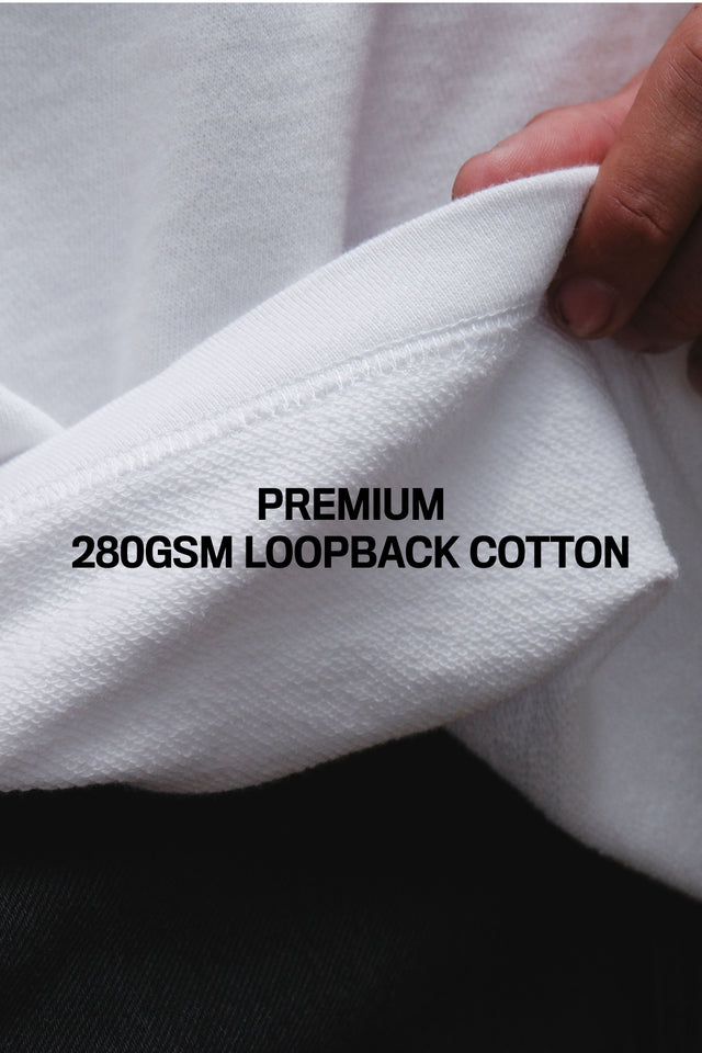 - Heavyweight Construction: 280gsm cotton loopback fabric provides structure and comfort.